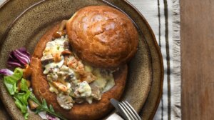 On y va : commencer par réduire en poudre grossière avec un robot le pain rassis. Détailler les filets de poulet en bâtonnets un peu épais. Mélanger ensuite les pignons, graines de moutarde et la chapelure et réserver.