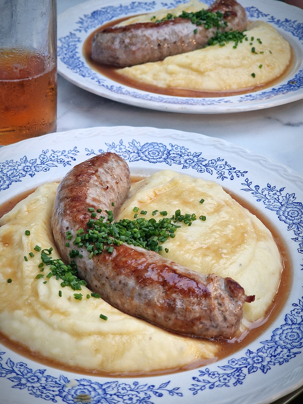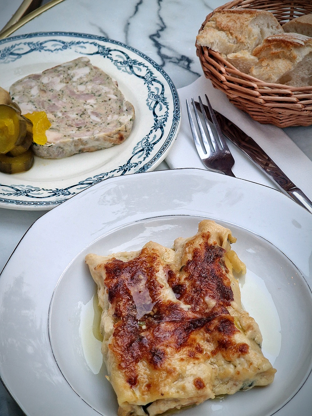 Pour oublier que c’est bientôt la rentrée, on accompagnera la délicieuse terrine de campagne-pickles (sucrés-vinaigrés) d’un VDF auvergnat blanc (La Guillaume, 2020, 100% gamay) ou d’un gamay rouge en Loire (le 2022 de Christian Venier). Les cannelloni de poulet aux blettes et estragon sont croustillants de fromage gratiné et la saucisse-purée fait l’unanimité avec un VDF d’Auvergne élevé en biodynamie, un pinot marqué par la minéralité des sols volcaniques, signé Frédéric Gounan, au domaine de l’Arbre blanc. La nuit avance, la terrasse se remplit, les conversations se font rieuses. Notre serveuse s’excuse : – Il faudra attendre une quinzaine de minutes, le chef est seul et on n’attendait pas autant de monde ». C’est bon signe.