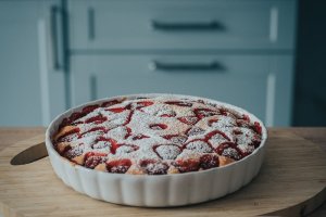 gâteau aux framboises Votre marché pour 6 personnes : 500 g de framboises ; 200 g de farine ; 120 g de sucre blanc ou roux ; 3 oeufs ; 1 généreuse cuillère à...