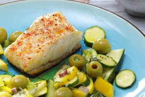 Préparation : 15 min / Cuisson : 12 min / Repos : 3 min Votre marché pour 6 personnes : 6 pavés de cabillaud de 150 g ; 3 pincées de sel fin + 2 pincées de sel...