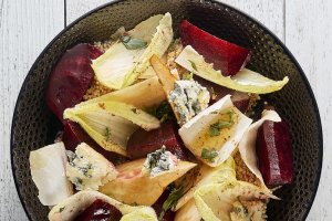 Préparation : 1h30 Votre marché pour 4 personnes : 1 betterave blanche ; 1 betterave jaune et 1 betterave rouge ; 150g de fromage Saint-Agur ; 200g de quinoa...
