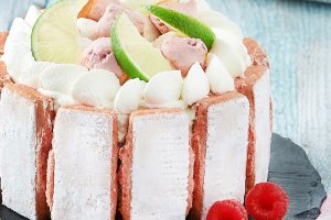 Préparation : 45 min Votre marché pour 8 personnes : 16 biscuits roses de Reims (type Fossier, vendus en GMS) ; 1 paquet de macarons framboise ; 25 g de...