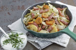 Préparation : 25 min / Cuisson : 40 min Votre marché pour 4 personnes : 700 g de pommes de terre de type Roseval ; 2 carottes ; 1 oignon ; 2 endives ; 150 g de...