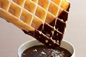 Préparation : 15 min / Cuisson : 8 min Votre marché pour 8 gaufres : 300 g de farine ; 10 g de levure chimique ; 75 g de sucre semoule ; 100 g de beurre demi...