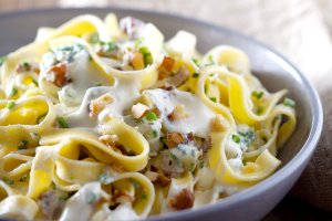 Préparation : 5 min / Cuisson : 6 min Votre marché pour 4 personnes : 400 g de tagliatelles fraîches ; 150 g de bleu d’Auvergne ; 4 cuillères à soupe de crème...