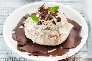 Votre marché pour 5-6 personnes : 70 g de sucre glace ; 5 g de Maïzena® ; 4 blancs d’oeufs ; 1 pincée de sel ; 100 g de sucre en poudre. Chantilly au chocolat...