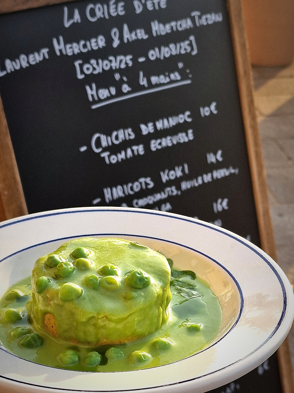 Service aimable, ambiance à la cool dans le genre tu-es-le-bienvenu-tire-la-chaise-et-assieds-toi. Pense à prendre tes lunettes de soleil car au couchant, tu risques d’en avoir besoin ! En cuisine, comme deux potes de toujours, Axel et Laurent jouent la complémentarité. Une soirée très amicale, dans un esprit fraternel. Deux petits desserts avant de partir ? Le clafoutis de poivron jaune à la framboise ressemble à une panna cotta, c’est un délice. La pastèque, jus de bissap et graines de paradis nous y conduit, comme un sorbet glacé et sucré. Décidément, il y a toujours une bonne raison pour aller à la Criée… A tester en urgence !