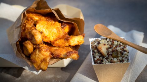 Préparation : 20 min / Cuisson : 25 min Votre marché pour 4 personnes : pour les fingers de poulet, 150 g de farine de riz ; 2 cuil. à soupe de...