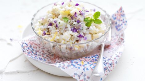 Préparation : 10 min Votre marché pour 4 personnes : 1 boîte moyenne de cœurs de palmiers (chez d’Aucy, 220g poids net égoutté) ; 300g de chou fleur...
