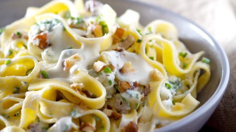 Préparation : 5 min / Cuisson : 6 min Votre marché pour 4 personnes : 400 g de tagliatelles fraîches ; 150 g de bleu d’Auvergne ; 4 cuillères à soupe...