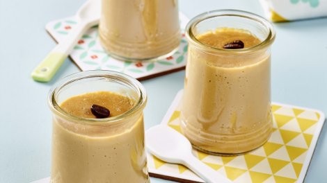Votre marché pour 6 personnes : 1 boîte de 570 g de crème dessert Mont Blanc au café ; 50 cl de lait ; 2 œufs ; 6 jaunes d’œufs et 100 g de...