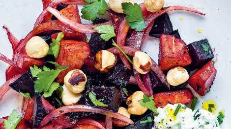 Préparation : 15 min / Cuisson : 15 min Votre marché pour 2 personnes : 200 g de betterave rouge cuite ; 1 pomme type Jonagold ; 15 g de noisettes...