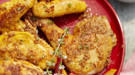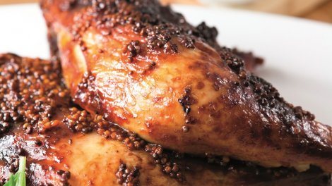 Préparation et cuisson : 55 min Votre marché pour 6 personnes : 1 poulet fermier (Label Rouge de marque St-Sever par exemple). Pour la marinade : 25...