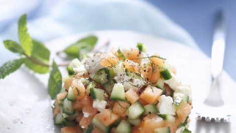 Préparation : 15 min / Pas de cuisson Votre marché pour 4 personnes : 1 beau melon charentais jaune de Provence ; 1 concombre ; 1 bloc de feta nature...