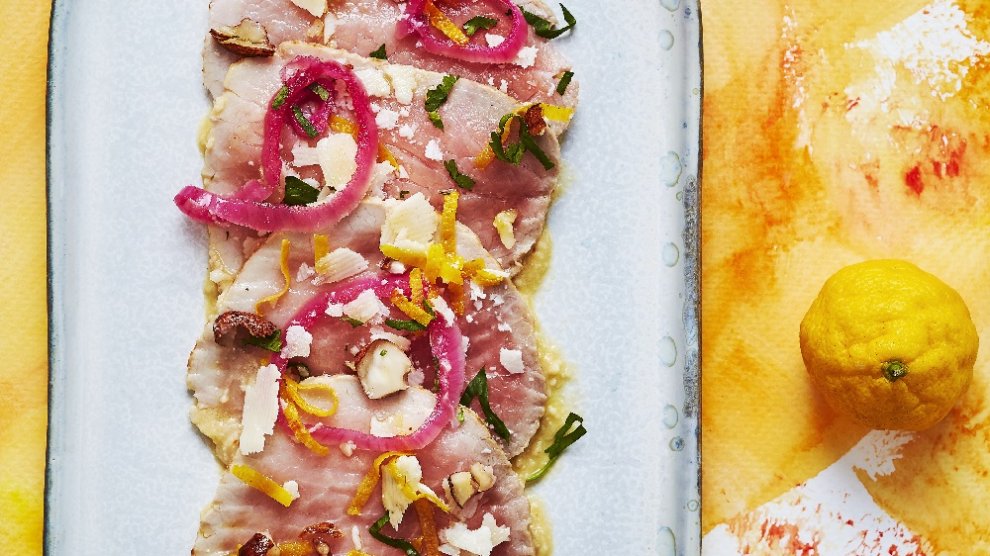 Préparation : 45 min / Pas de cuisson Votre marché pour 4 personnes : 400 g de quasi, de filet ou de pavé épais de veau né, élevé et abattu en France ; quelques brins de coriandre fraîche ; 100 g d’amandes entières ; de la fleur de sel. Pour les pickles : 1 oignon rouge ; 50 g de sucre ; 10 cl de...