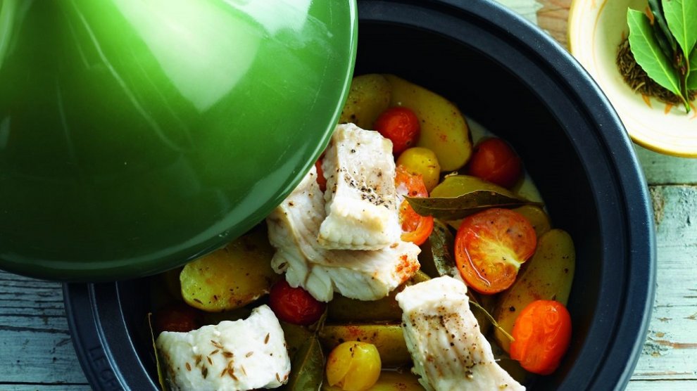 Préparation : 15 min / Cuisson : 1 heure Votre marché pour 4 personnes : 4 morceaux de filets de Loup de Méditerranée de 150 g chacun ; 1 kg de pommes de terre grenaille ; 1 bouquet de coriandre ; 1 gousse d’ail ; le jus de 2 citrons ; 4 feuilles de laurier ; une demi cuillère à café de coriandre...