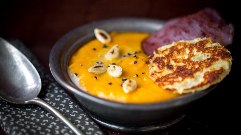 Préparation : 20 min / Cuisson : 30 min Votre marché pour 6 personnes : 1,2 kg de potimarron ; 1 oignon ; 20 g de beurre demi-sel ; 6 tranches de bacon ; 50 g d’emmental râpé ; 10 cl de lait entier ; du gros sel et le poivre du moulin. On y va : couper le potimarron en deux, l’égrener...