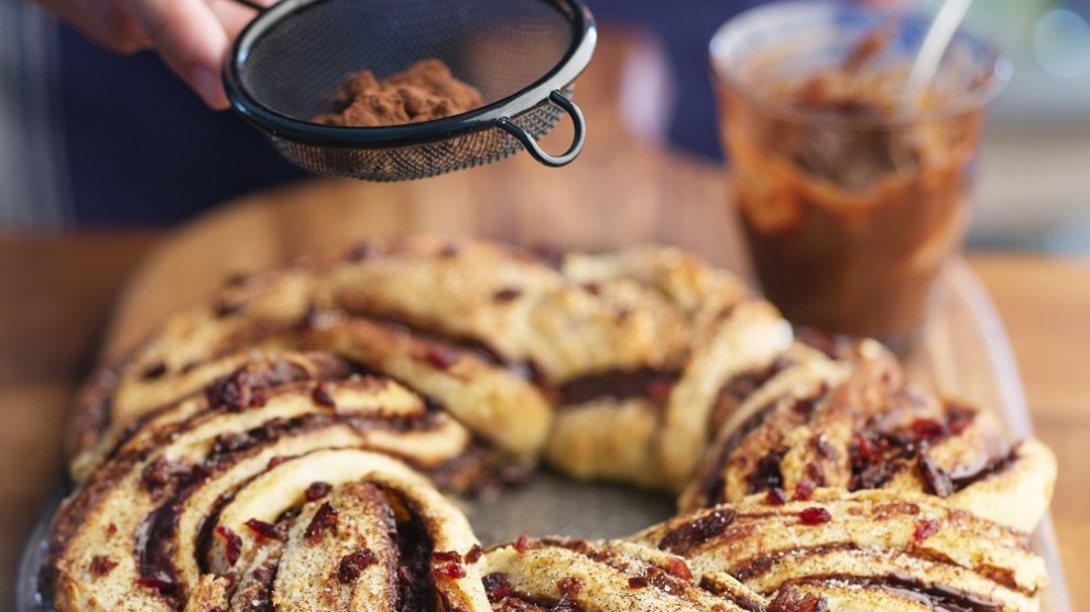 Préparation – 30 min / Cuisson – 25 min Garniture : 200 g de chocolat noir ; 33 cl de crème fleurette légère Elle & Vire ; 2 cuillères à soupe de baies de cranberries séchées hachées ; 25 g de beurre de Condé-sur-Vire doux Elle & Vire fondu ; 1 cuillère à soupe de sucre en...