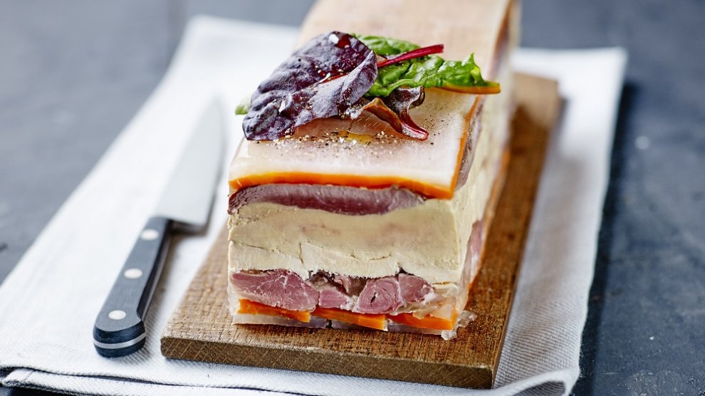 Préparation : 40 min / Cuisson : environ 1h30 / Repos : 24 heures Votre marché pour 2 terrines : 2 filets de poulet fermier des Landes ; 1 lobe de foie gras de canard fermier éveiné ; 1 magret de canard fermier ; 4 feuilles de gélatine ; 3 carottes ; 3 navets ; 1 jarret avant de porc demi-sel ; 1...