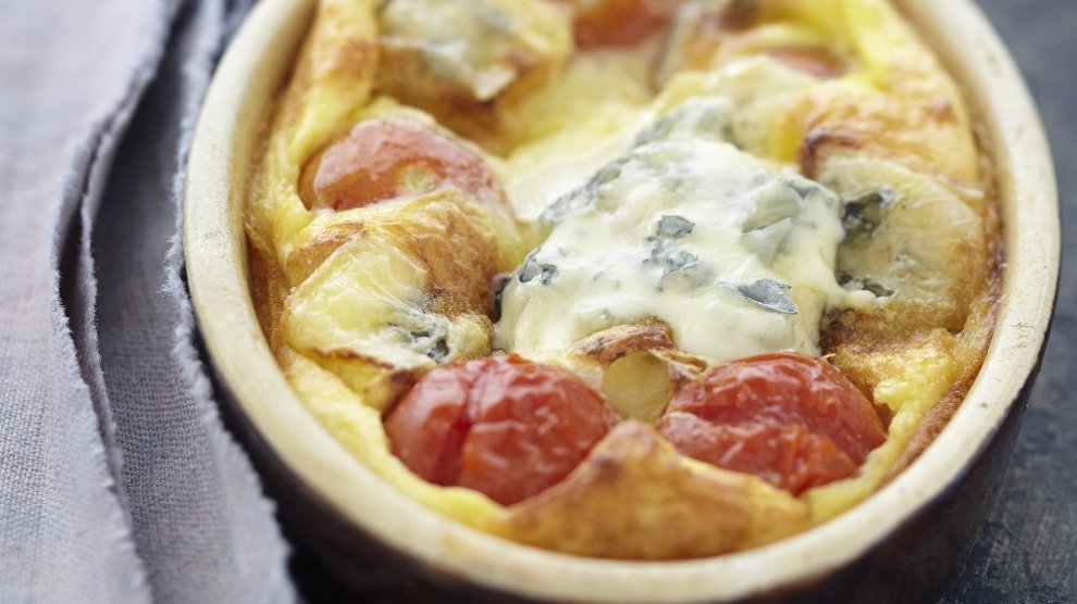 Préparation : 15 min / Cuisson : 40 min Votre marché pour 4 personnes : 250 grammes de Bresse Bleu Le Véritable (en grandes surfaces) ; 4 oeufs fermiers bio ou label rouge (garantissant que les poules sont élevées en liberté) ; 40 cl de lait ; 160 grammes de farine ; 2 pincée de piment en poudre...