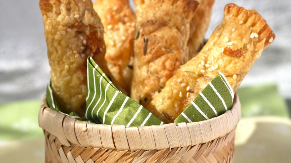 Préparation : 10 min / Cuisson : 15/20 min Votre marché pour 8 feuilletés : 1 pâte feuilletée au beurre prête à l’emploi ; 80 g de fromage Pont-l’Evêque (de type E. Graindorge) ; du cumin en grains ; un jaune d’œuf et un moulin à poivre. On y va : étaler la pâte sur un plan de travail bien propre...