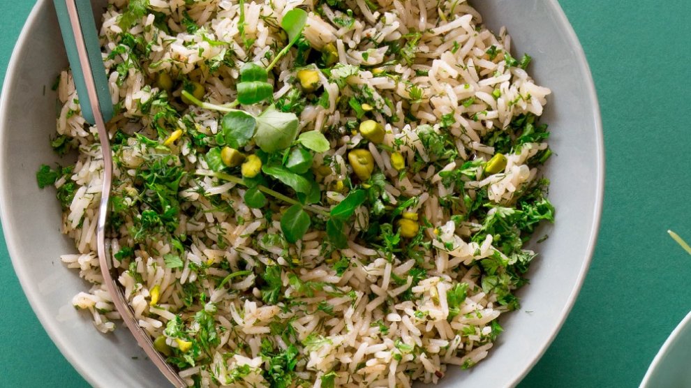 Préparation : 20 min / Cuisson : 11 min Votre marché pour 4 personnes : 20 g de beurre ; 3 cl d’huile d’olive ; 1 oignon ; un petit bouquet garni ; 240 g de riz basmati (chez Taureau Ailé, « Escale à Chandernagor ») ; 1 petit bouquet de menthe ; 1 petit bouquet de coriandre ; 1 petit bouquet de...