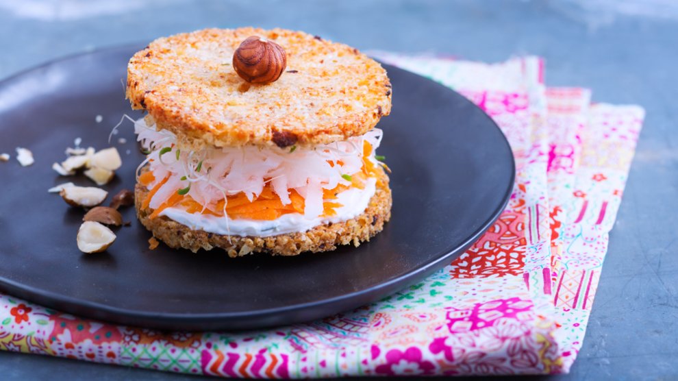 Préparation : 20 min / Cuisson : 5 min Votre marché pour 4 personnes : 50 g de flocons d’avoine ; 50 g de noisettes hachées ; 70 g de parmesan râpé ; 50 g d’emmental râpé ; un demi radis noir ; 1 carotte ; 150 g de fromage frais ; un quart de bouquet de ciboulette ; une petite barquette...