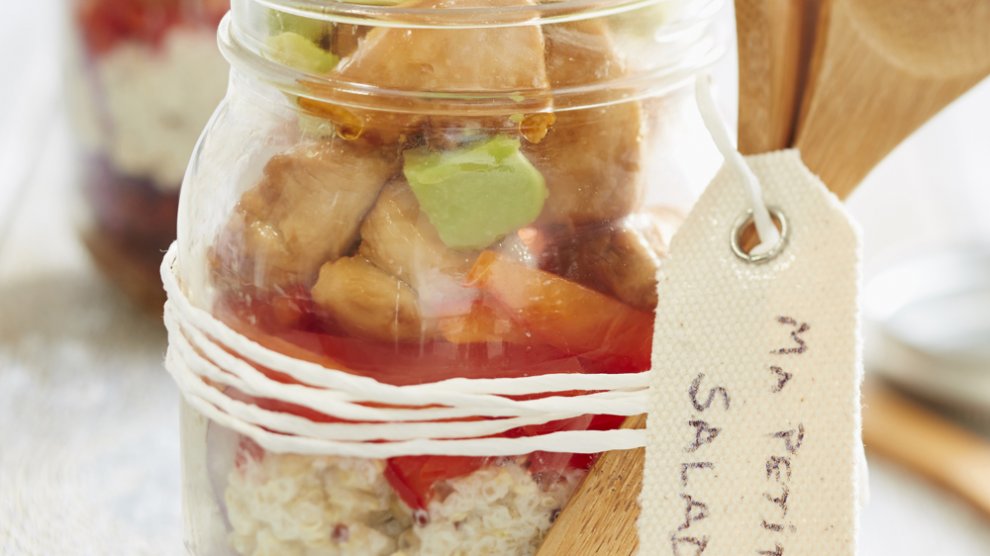 Préparation : 15 min / Cuisson : 15 min Votre marché pour 4 personnes : 2 filets de poulet fermier (les poulets St Sever Label Rouge ont été élevés en liberté) ; 3 verres de quinoa ; 1 litre de bouillon de volaille ; 200 g de ricotta ; 1 poivron rouge ; 1 petit oignon rouge ; 2 avocats ; 4 tomates...