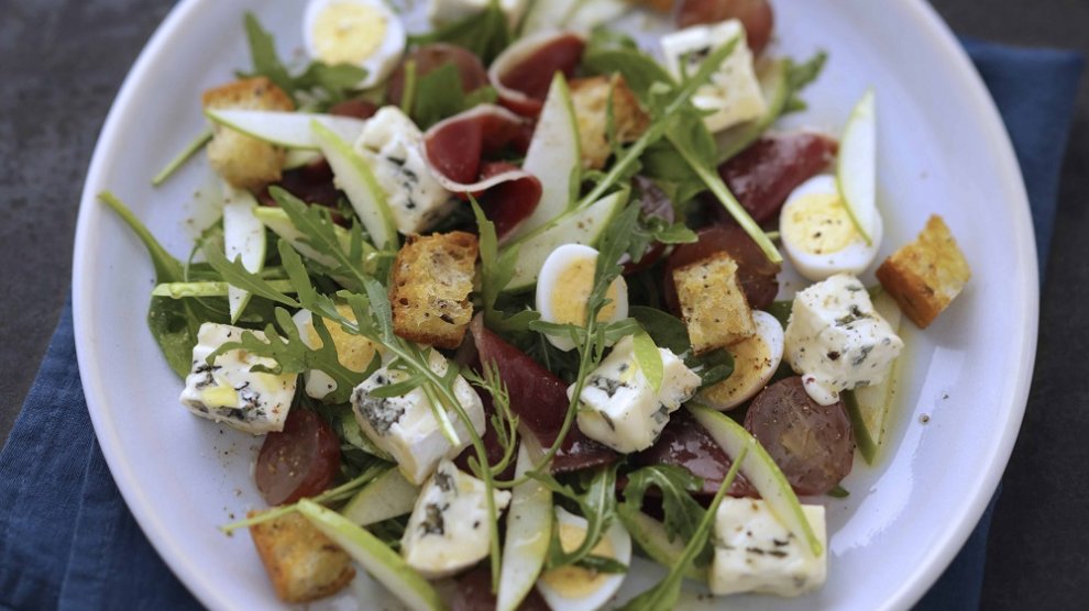 Préparation: 30 min / Cuisson: 10 min Votre marché pour 4 personnes : 300g de Bresse Bleu Suprême ; 12 œufs de caille ; 20 tranches de magret fumé ou séché ; 1 pomme verte ; 200g de tomates cerises ; une demi baguette de pain ; 120g de mesclun de salade ; 5 cl d’huile de colza ou de tournesol ; 8...