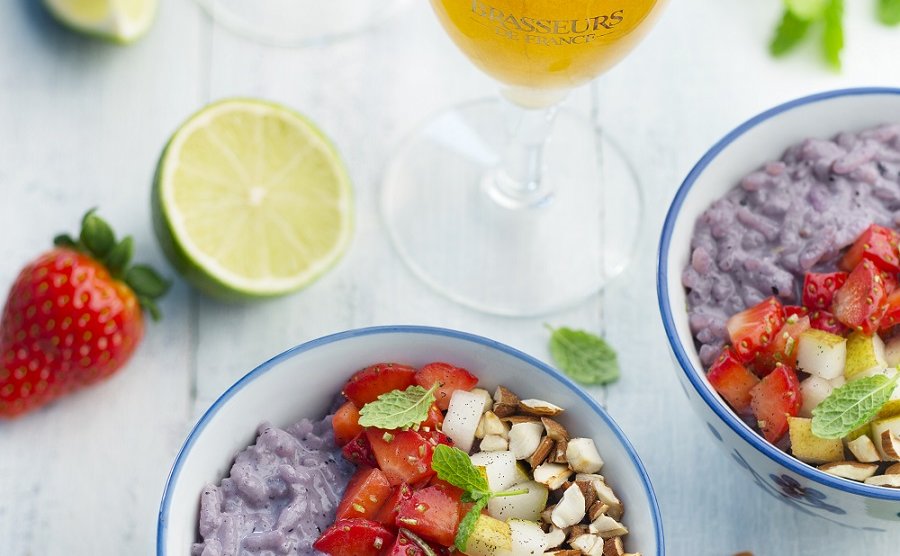 Préparation : 10 min / Cuisson : 30 min Votre marché pour 4 personnes : 1 litre de lait entier ; 150g de riz rond à dessert ; 10 fraises ; 1 poire williams ; 1 gousse de vanille fendue ; 1 cuil. à soupe de confiture de myrtille ; 1 cuil. à soupe d’amandes concassées grillées ; 1 cuil. à soupe de...