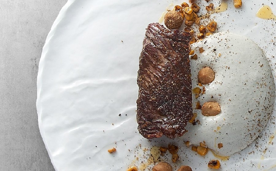 Préparation : 1h15 / Cuisson : 15 min Votre marché pour 4 personnes : 4 pièces de bavette maturées par votre boucher de 180g par personne ; 1 pot de crème Saint Agur (en grandes surfaces) ; 100ml de lait ; 100g de macadamia ; 1 épi de maïs ; fleur de sel ; poivre du moulin ; huile de pépins de...