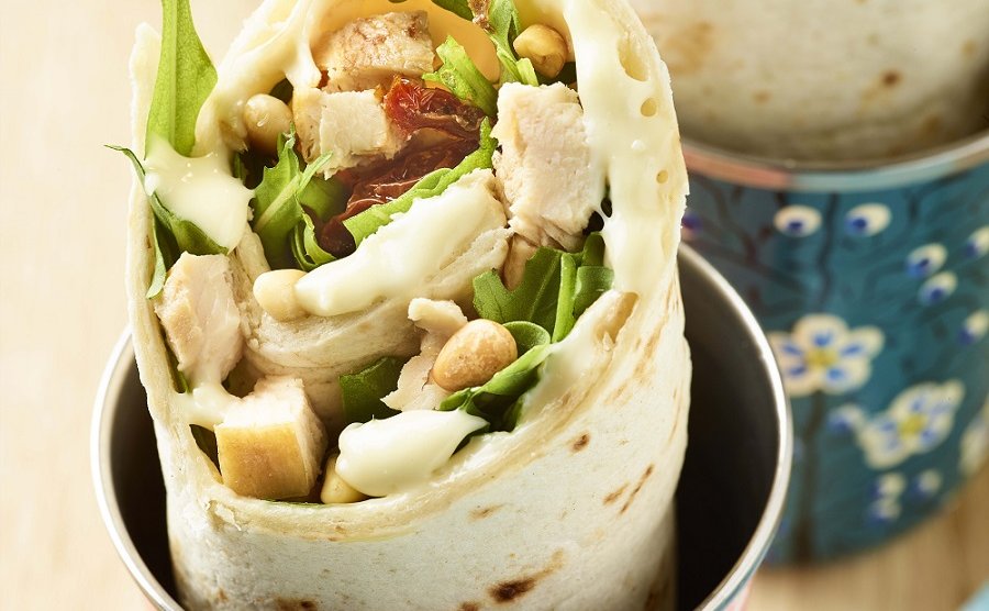 Préparation : 15 min / Cuisson : 25 minutes Votre marché pour 4 personnes : 4 wraps ; 250g de fromage de Chaource AOP ; 100 ml de crème fraîche entière ; 200g de filets (ou des blancs) de poulet ; 20 g de beurre ; 100g de roquette ; 100 g de tomates confite et 30 g de pignons de pin. On y va :...