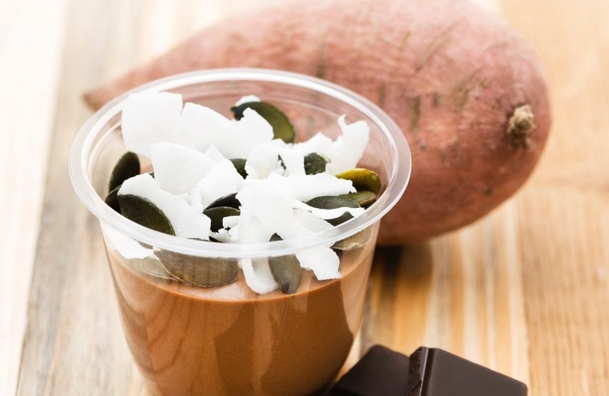 Préparation : 10 min / Cuisson : 20 min Votre marché pour 4 personnes : 300 g de patate douce ; 100 g de chocolat au lait ; quelques graines de potiron et quelques copeaux de noix de coco On y va : peler les patates, les couper en gros morceaux de taille identique. Cuire une dizaine de minutes à la...