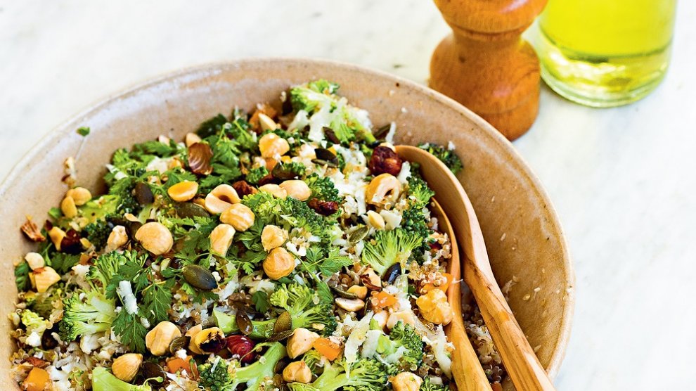 Votre marché pour 4 personnes : 1 chou-fleur ; un demi brocoli ; 2 carottes ; 100 g de quinoa ; 30 g de noisettes ; 20 g de graines de courge ; 2 pincées de cerfeuil haché ; 10 cl d’huile de colza ; sel et poivre. On y va : laver, éplucher et couper les carottes en brunoise. Les faire cuire dans...