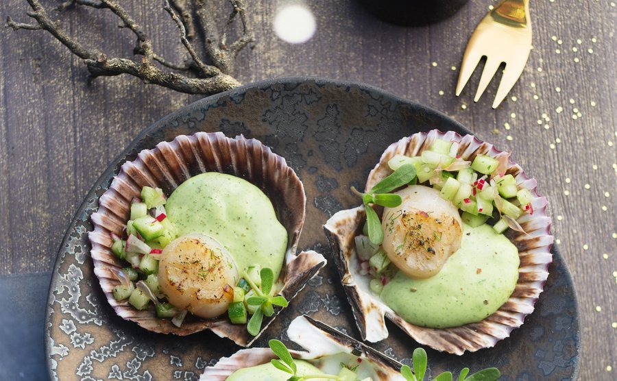 Préparation : 20 min / Cuisson : 10 min Votre marché pour 4 à 6 personnes : 18 noix de saint-jacques ; un demi concombre ; 4 radis roses émincés ; 1 cuillère à soupe d’huile de noisettes ; 1 cuil. à café d’aneth ciselé ; 3 pommes de terre moyennes ; 30 cl de lait entier ; 3 cuil. à soupe de...