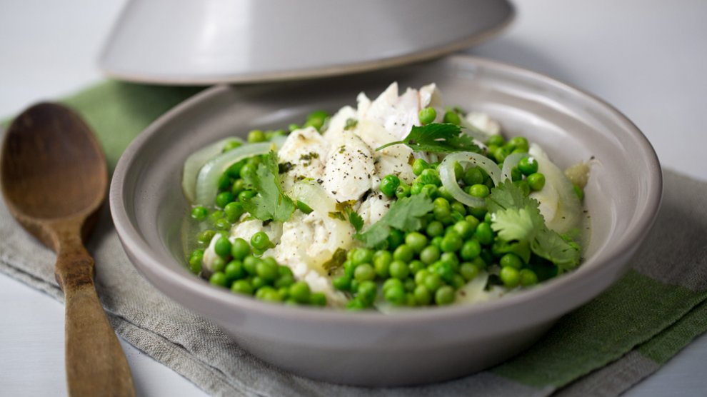 Préparation : 30 min / Cuisson : 35 min Votre marché pour 4 personnes : 2 oignons ; 6 gousses d’ail ; 6 brins de coriandre ; 6 brins de persil ; une demi écorce de citron confit ; 1 citron ; 400 g de petits pois écossés frais (ou surgelés) ; 30 g de beurre ; une demi cuillère à café de...