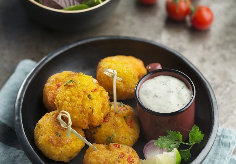 Préparation : 25 min / Cuisson : 20 min Votre marché pour 12 boulettes : 20 crevettes décortiquées ; 200 g de patate douce cuite ; 15 cl de crème fleurette légère Elle & Vire ; 40 g de beurre de Condé-sur-Vire doux Elle & Vire ; 90 g de farine ; 1 oeuf ; de l’huile d’olive ; 1 gousse...