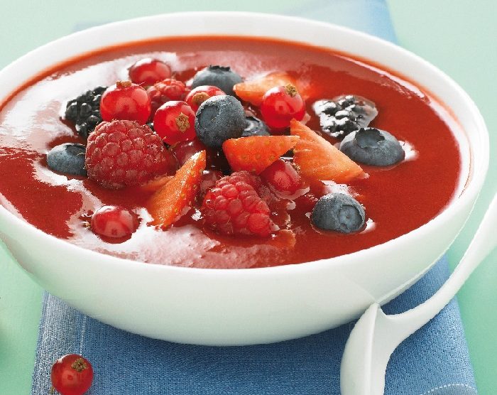 Préparation : 30 min / Pas de cuisson Votre marché pour 6 personnes : 1 kg de fraises ; 2 cuillères à soupe jus de citron ; 3 cuillères à soupe bombées de sucre roux ; 300 g de fraises ; 200 g de framboises ; 100 g de myrtilles ; 100 g de mûres. On y va : laver et équeuter les fraises. Puis les...