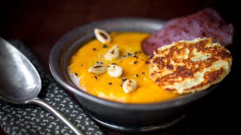 Préparation : 20 min / Cuisson : 30 min Votre marché pour 6 personnes : 1,2 kg de potimarron ; 1 oignon ; 20 g de beurre demi-sel ; 6 tranches de...