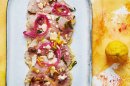 Mi-cuit de veau sauce tonnato, yuzu et amandes croquantes