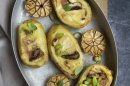 Pommes de terres farcies à la raclette, ail et champignons
