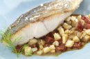 Dos de loup de ligne rôti, fenouil à la badiane et chorizo
