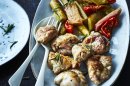 Ris d’agneau poêlés, rhubarbe et tomates confites