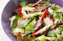 Salade de poulet fermier, tagliatelles de légumes en ratatouille glacée