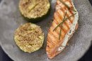 Saumon écossais grillé au fromage frais et à la ciboulette, courgettes au sésame